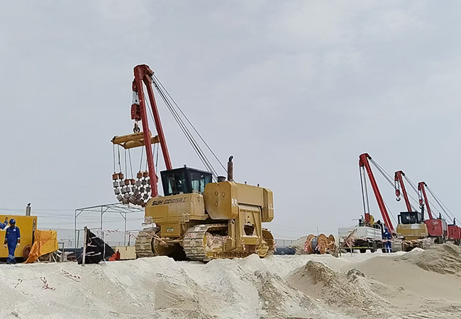 阿聯(lián)酋地區(qū)氣候炎熱,夏季氣溫常高達50攝氏度以上,加之沙塵環(huán)境復(fù)雜,對工程設(shè)備的性能提出了高要求。中蘇海工履帶吊管機以其強大的動力系統(tǒng)、高效的散熱設(shè)計以及堅固的結(jié)構(gòu),完美適應(yīng)了這些挑戰(zhàn),確保了施工的高效性和連續(xù)性。設(shè)備在高溫環(huán)境下運行穩(wěn)定,操作靈活,極大地提升了施工效率,贏得了現(xiàn)場施工人員的一致好評。
