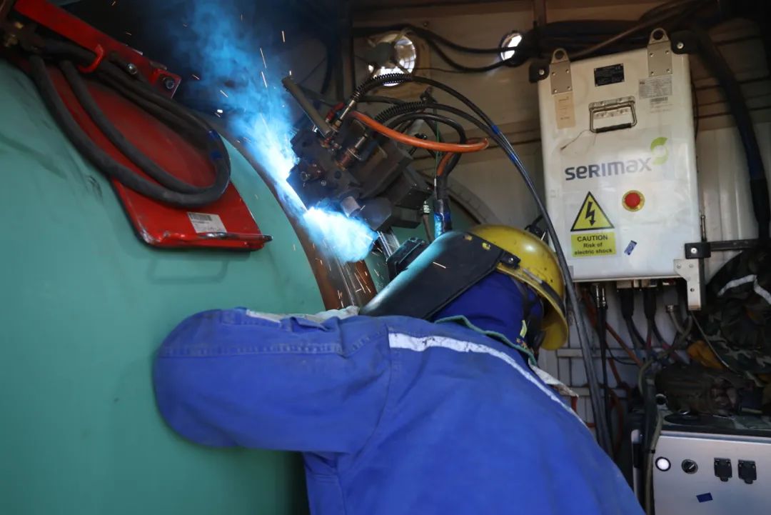 在項目攻堅關(guān)鍵時期,項目團隊積極協(xié)調(diào)物資,保障施工資源儲備充足,與技術(shù)工作室緊密合作,及時解決現(xiàn)場問題,經(jīng)過七天時間的攻堅奮戰(zhàn),自動焊接一機組完成160道焊口,焊接一次合格率達100%,刷新公司海外大口徑長輸油氣管道項目歷史紀(jì)錄,迅速掀起“比學(xué)趕幫超”的競賽熱潮。