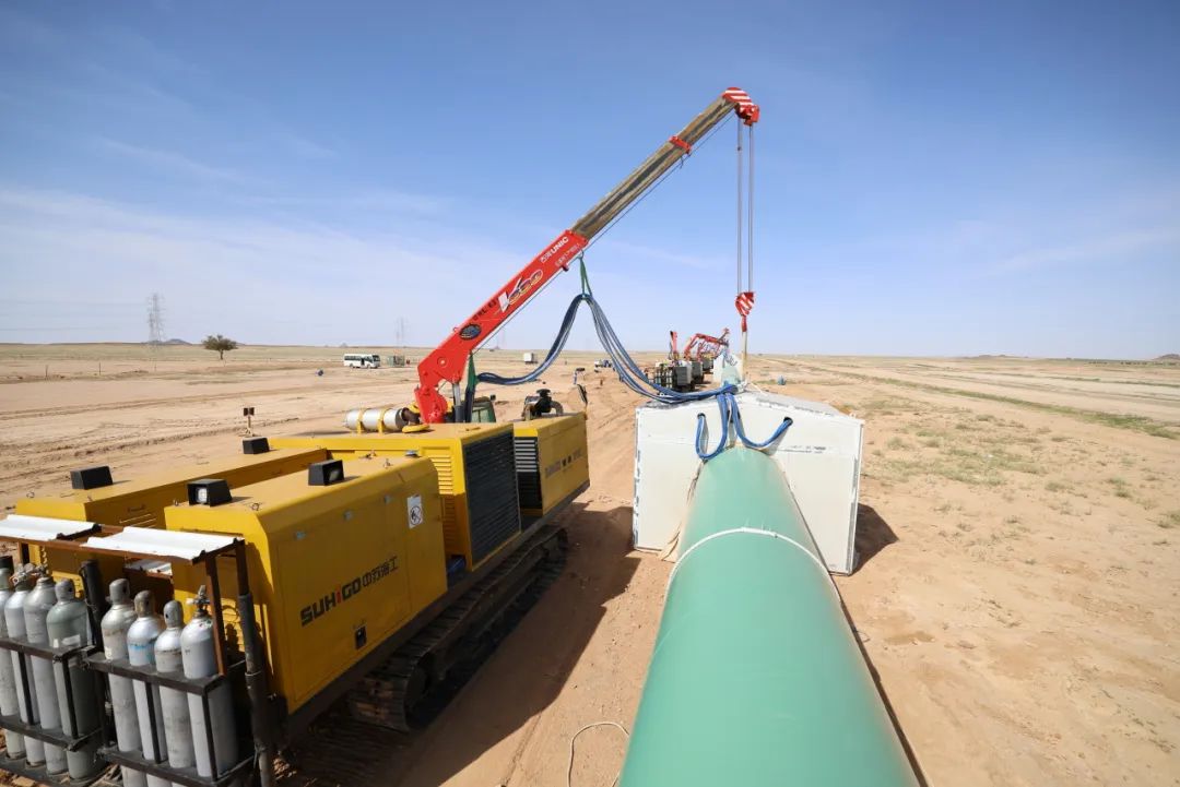 氛圍火熱的沙漠中,項目全線緊密配合,布管、組對、焊接等環(huán)節(jié)實現(xiàn)無縫銜接,管溝開挖及布管單機組單日施工突破600米,自動焊接二、三機組不甘落后,分別創(chuàng)造出單日24道、20道焊口的成績,以實際行動為項目建設(shè)按下“加速鍵”。